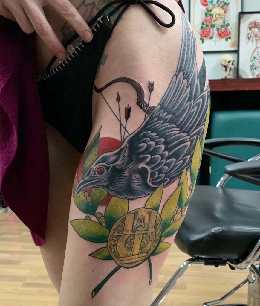 My two big tattoos (no jokes about my thighs, please) are a diptych representing the Apollonian/Dionysian conflict. On my left, we have Apollo, and on the right, his brother Dionysus. Apollo, god of the sun, is one noble dude. He’s thoughtful and reasonable. He fills out his planner, and, in doing so, never forgets a birthday. Dionysus is the god of wine and dance. He’s the life of the party, a little chaotic. Maybe he has a planner, but it’s only full of doodles of boobs. Your birthday is NOT in it, but he’s at your party. (I may have committed a little too heavily to this metaphor.)